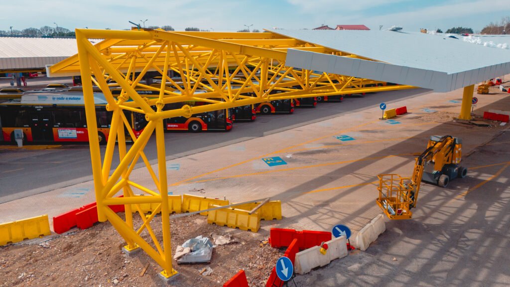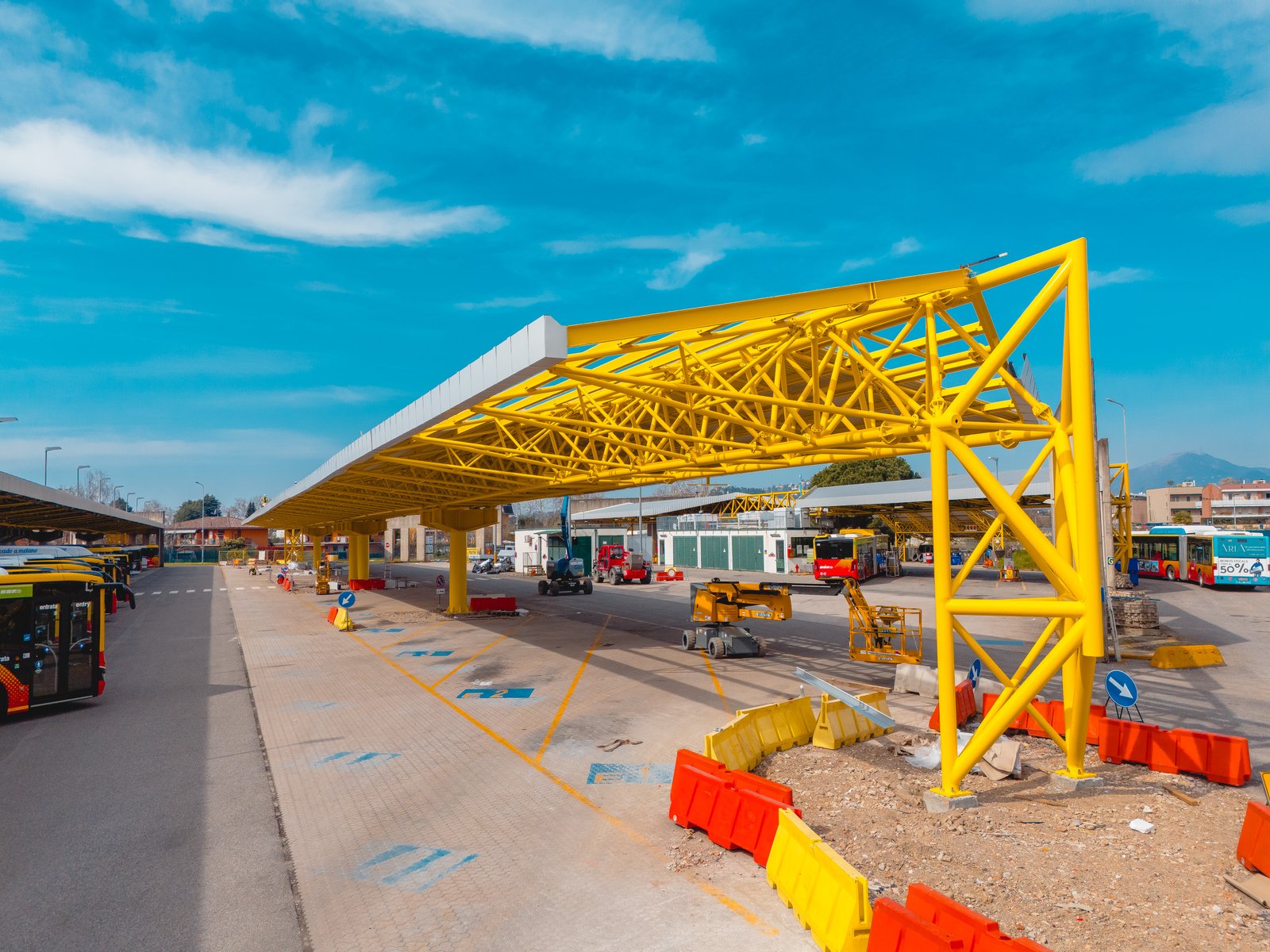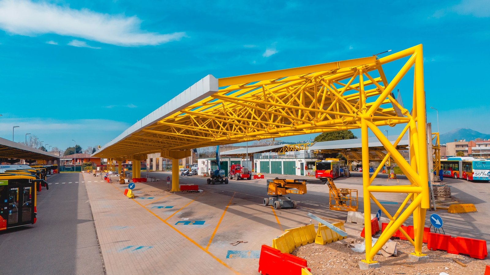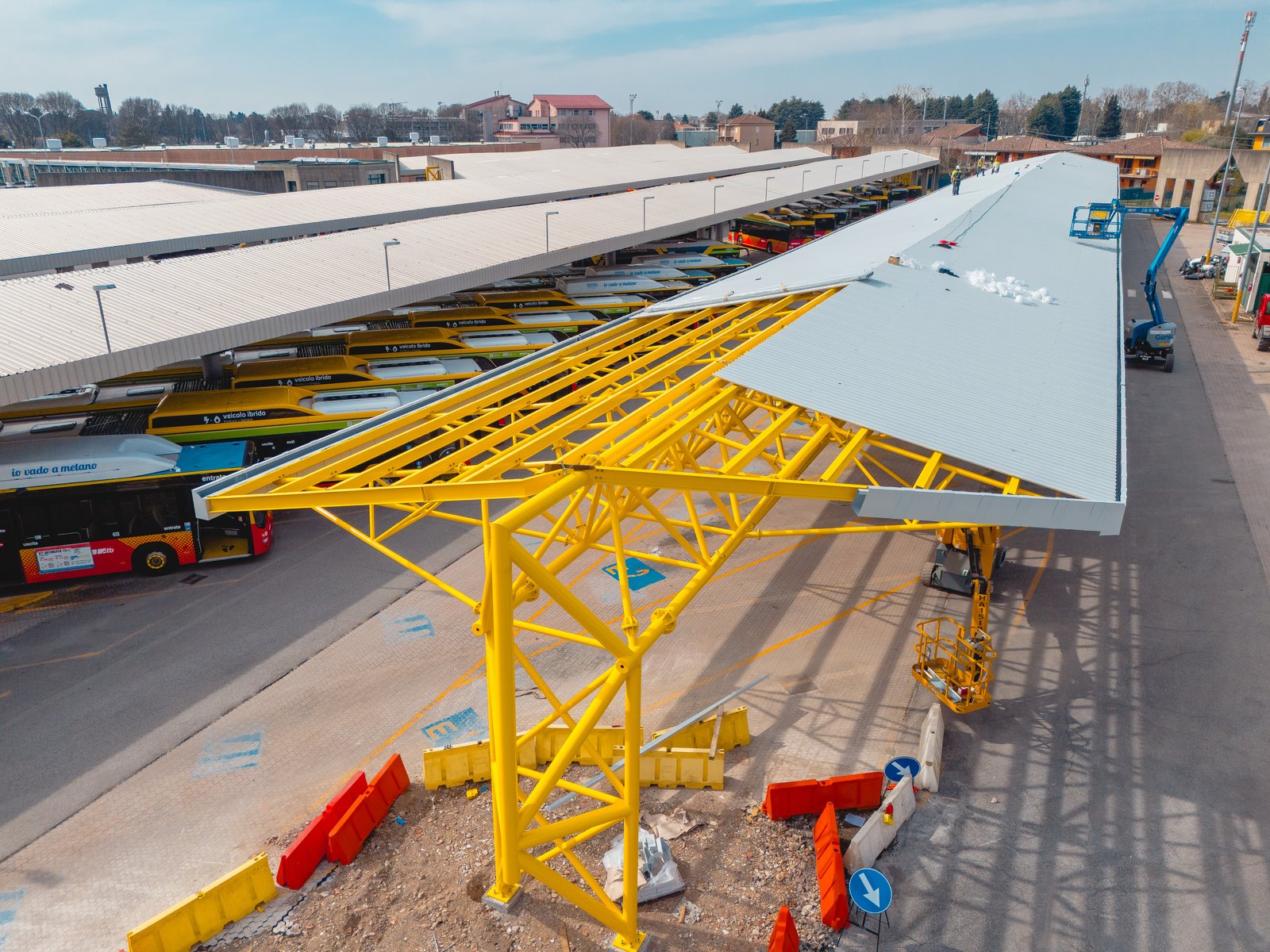 Lungo il percorso sono state realizzate 18 fermate dotate di pensiline studiate appositamente per questo progetto, altamente tecnologiche e personalizzate per la committenza.