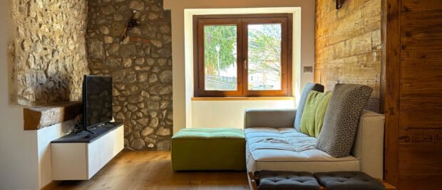 Ci troviamo a Serina, nelle prealpi orobie Bergamasche. Lo studio ha seguito la ristrutturazione di un appartamento montano di circa 60 metri quadri divisi su due livelli all’interno di una casa ottocentesca. La proprietà chiedeva di unire i due piani precedentemente divisi per creare un unico appartamento, con la zona giorno al piano di ingresso e la zona notte nel piano seminterrato.